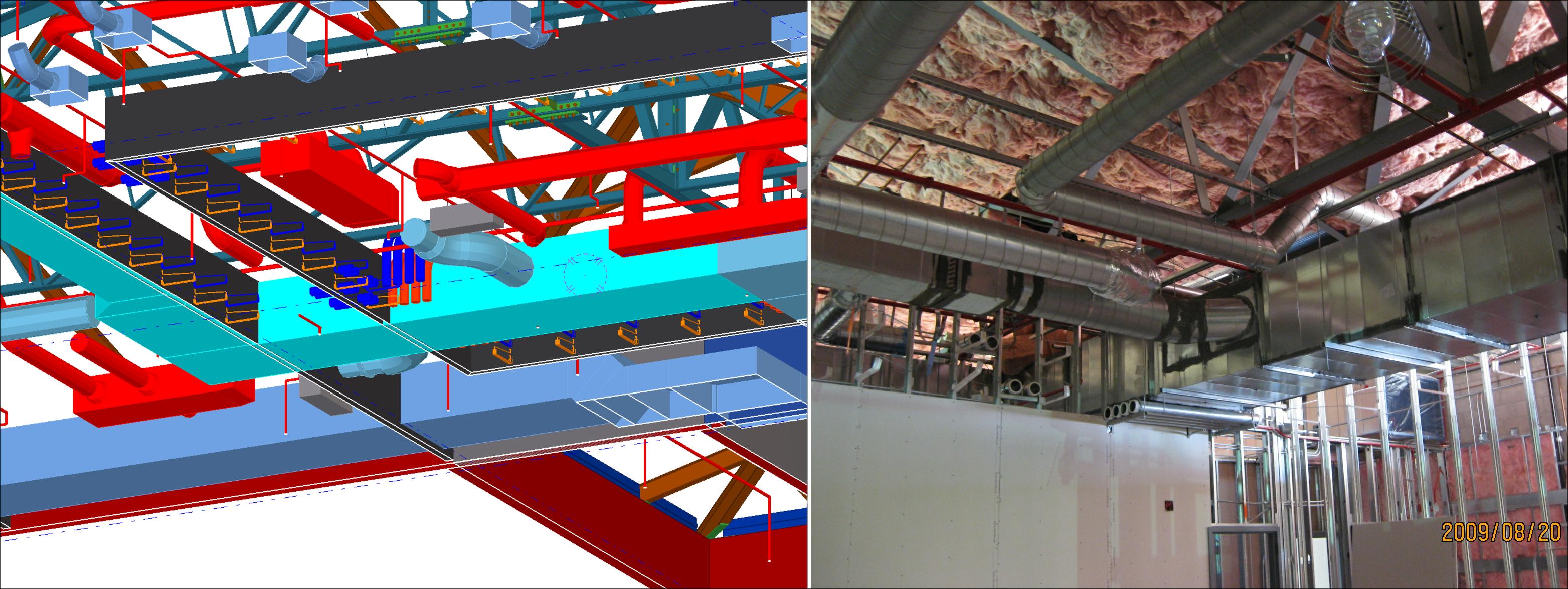 The largest structure a two story 89,000 SF Head Quarters building is a very tightly integrated building containing Office space, high security space, Auditorium, medical facilities, and lots of high technology infrastructure. The challenge we faced with this structure was the lack of space in which to place the MEP & Fire and all other required systems. As designed the none of the systems would not have been constructable per the Architectural specifications.